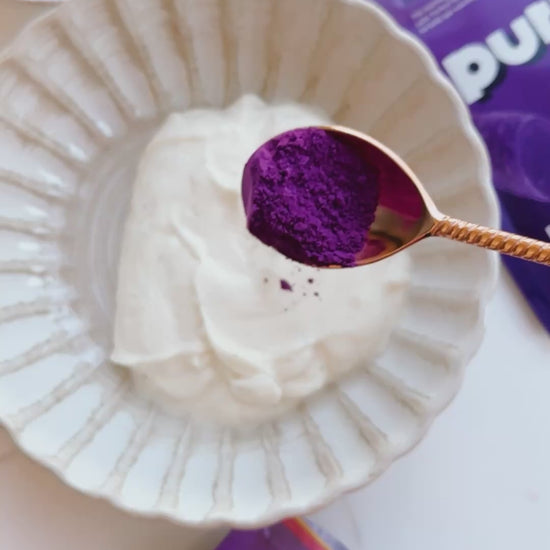 Why add Purple Sweet Potato Powder to your daily routine? Because it’s a delicious way to nourish your body while adding natural sweetness and depth to your meals. Its rich antioxidant content helps fight oxidative stress, supporting healthy aging and a strong immune system. Plus, the fiber promotes gut health and aids digestion, keeping your tummy happy and balanced.